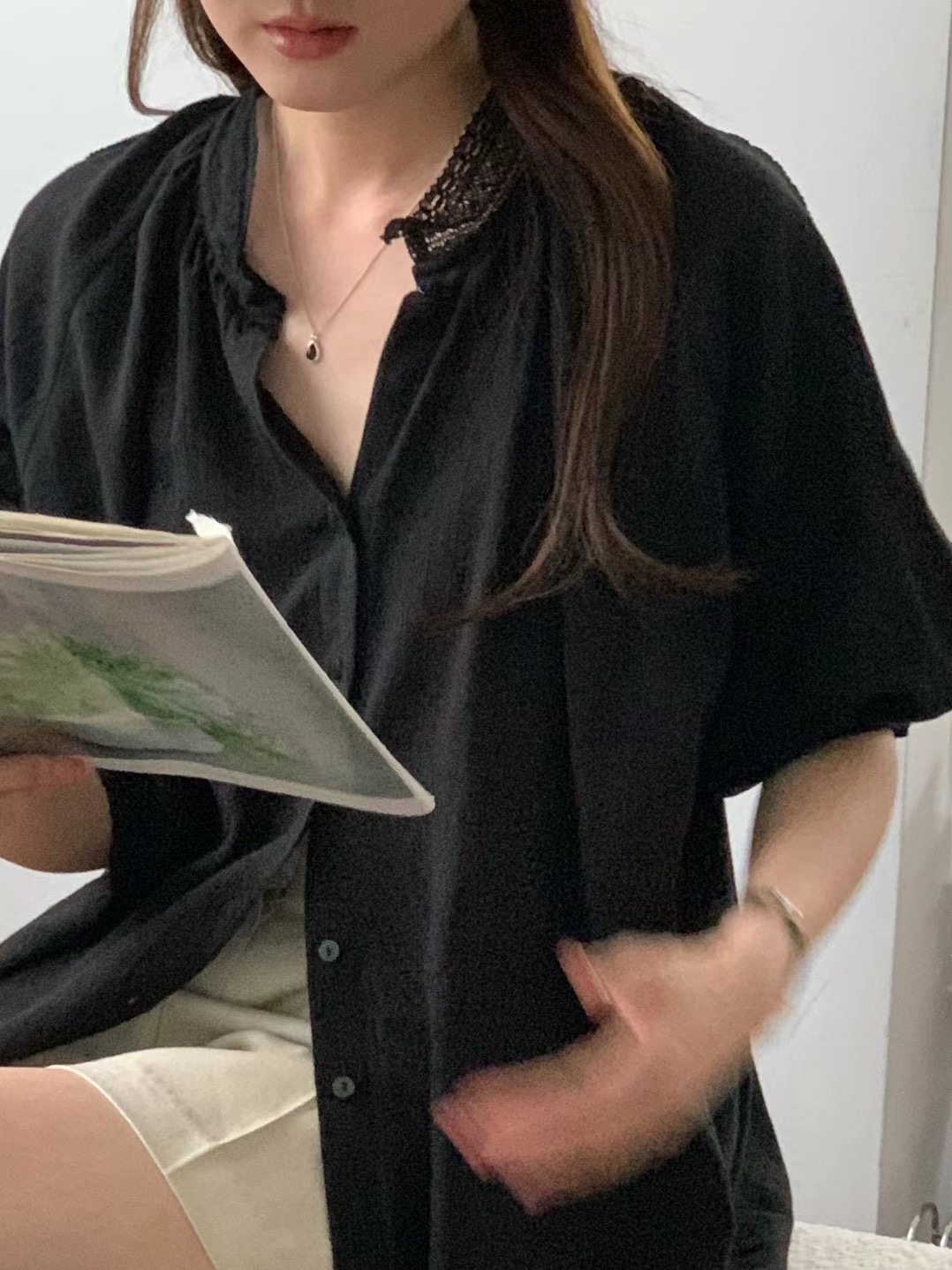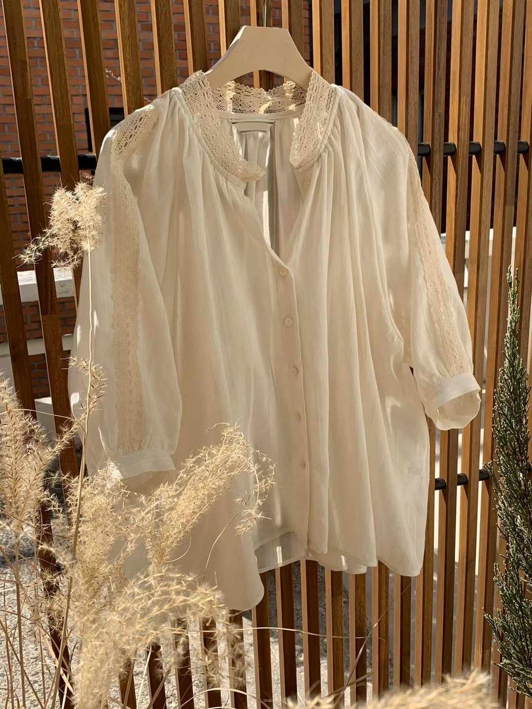 B02 小蕾絲七分袖上衣