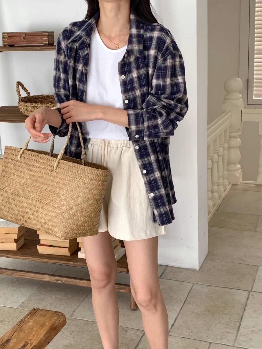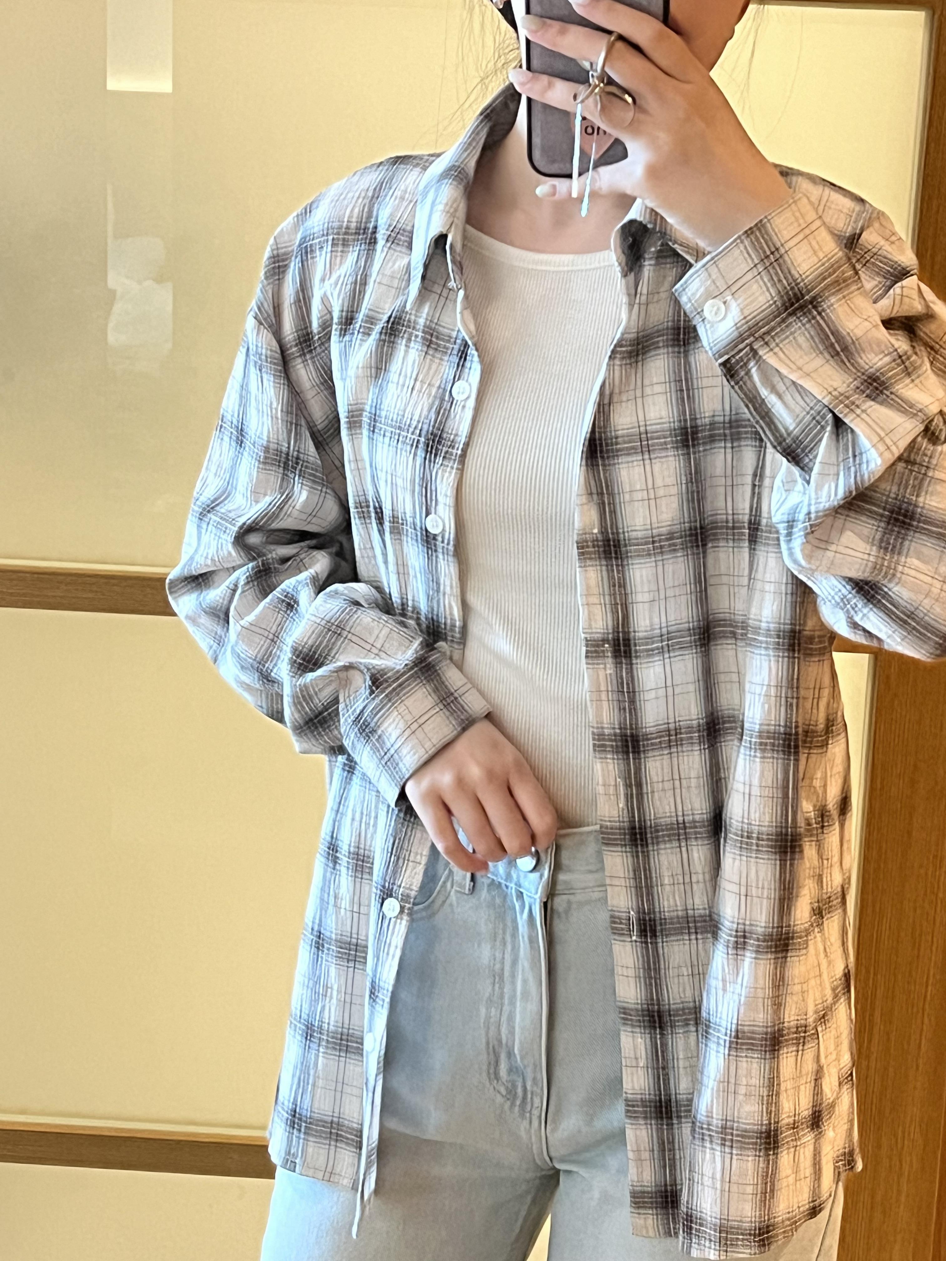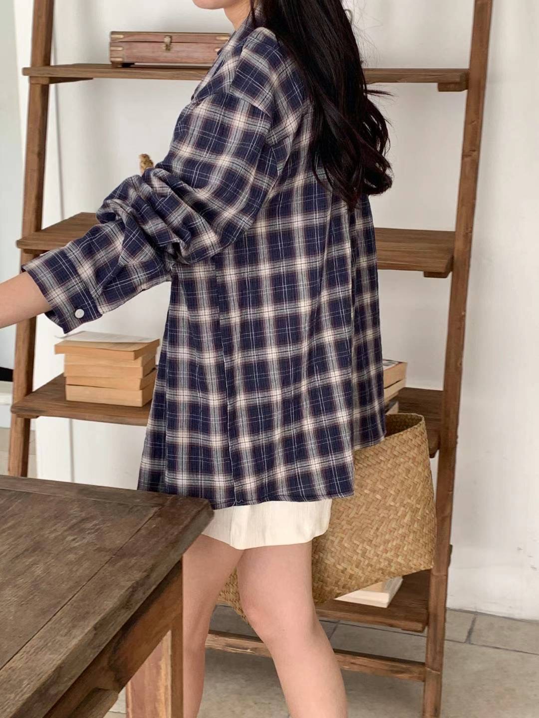 E04 寬鬆格紋襯